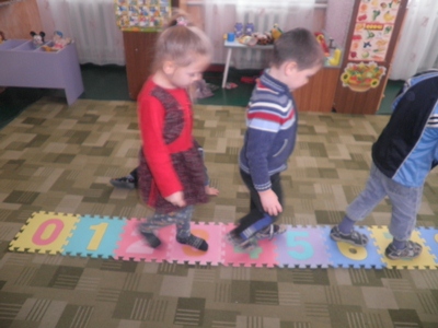 Матеріал і обладнання : різнокольорова доріжка з цифрами, д/г «Частини доби», числовий ряд від 1-10.