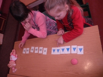 -формувати вміння знаходити склад числа 3 шляхом об'єднання групи предметів;